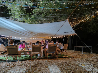In the evening, we had a barbecue. Some people sat over there talking, drinking, and eating snacks, while others sat over there playing cards. Our colleagues Qing, Irving, and Jemmy were the chefs for the night. Under their skilled hands, plates of delicious food were prepared. Although it was very hot and sweat was dripping down, they did not shout out of tiredness. We are very grateful to them for working so hard so that we could have a delicious meal!".